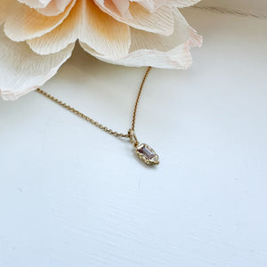Med sin helt lyse lyserøde farve i turmalinen, og en lille hvid 0,01ct Tw/vs diamant, fremstår dette candle vedhæng yderst feminint og elegant.