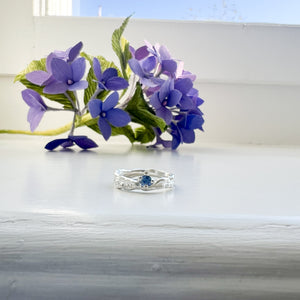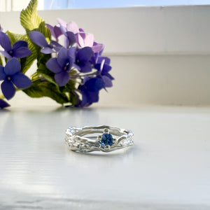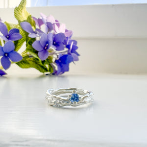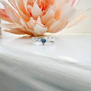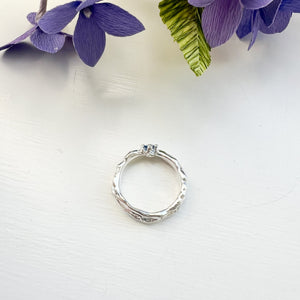 En rustik ring fremstillet i sølv, med en rigtig flot lyseblå safir.