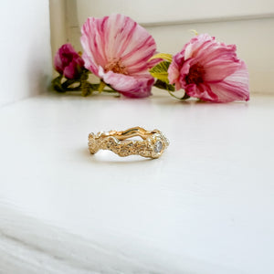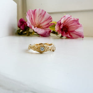 Nature diamantring, håndlavet på vores værksted i Svendborg i 18kt guld med en 0,10ct tw/vs diamant.