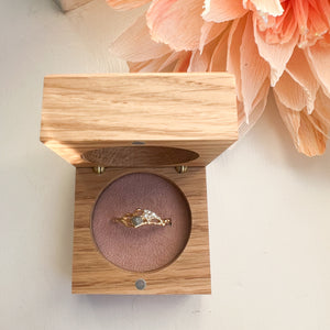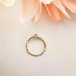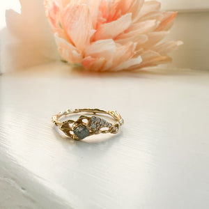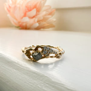 Kombinationen af det rå og det fine, er indbegrebet af denne ring.