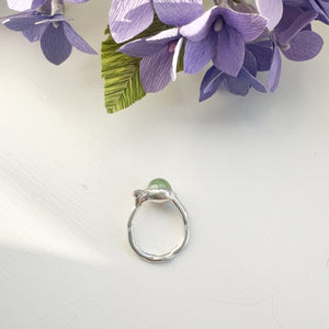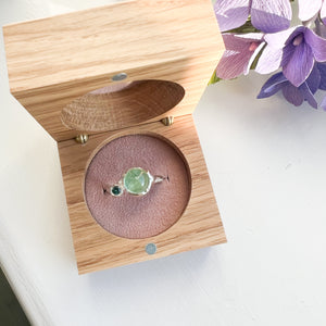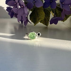 En unika sølvring, med en fantastisk smuk lyse grøn tourmaline og mørkegrøn safir.