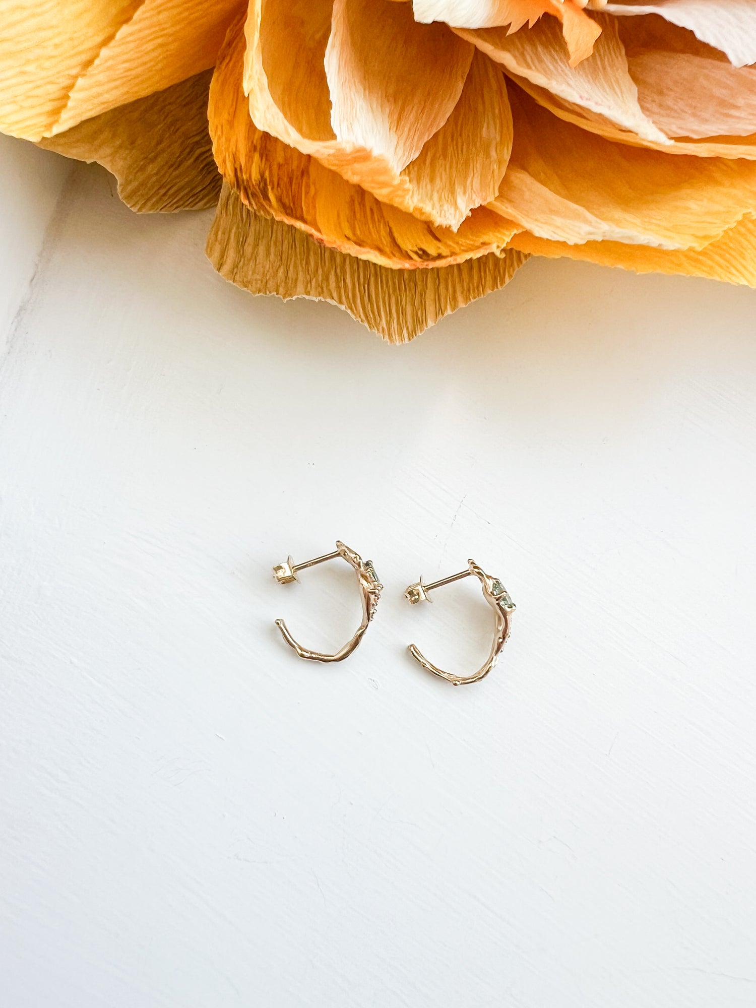 Øreringene er håndlavede i 18kt guld, på vores værksted i Svendborg.